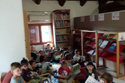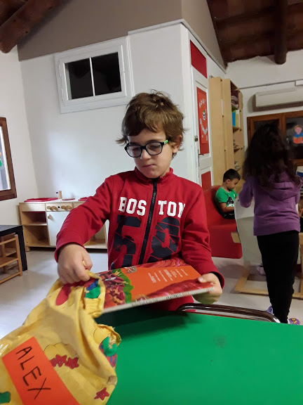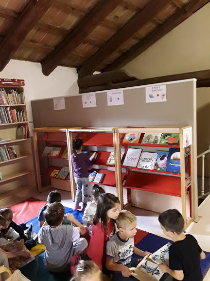 Il Laboratorio della Biblioteca viene ampliato dalla possibilità di portare a casa, una volta a settimana, un libro della Scuola, che i bambini potranno leggere con i genitori, avendone cura: questo permette al bambino di apprendere a gestire il prestito del libro.