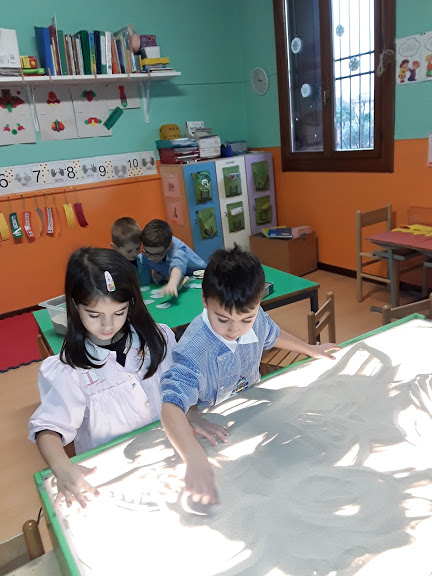 Attraverso giochi sull’ascolto e sul ritmo, i bambini apprendono la bellezza del giocare con le parole (rime, conte, filastrocche). Il laboratorio fonologico aiuta i bambini ad avvicinarsi al codice scritto, potenziando anche le situazioni di scrittura spontanea.